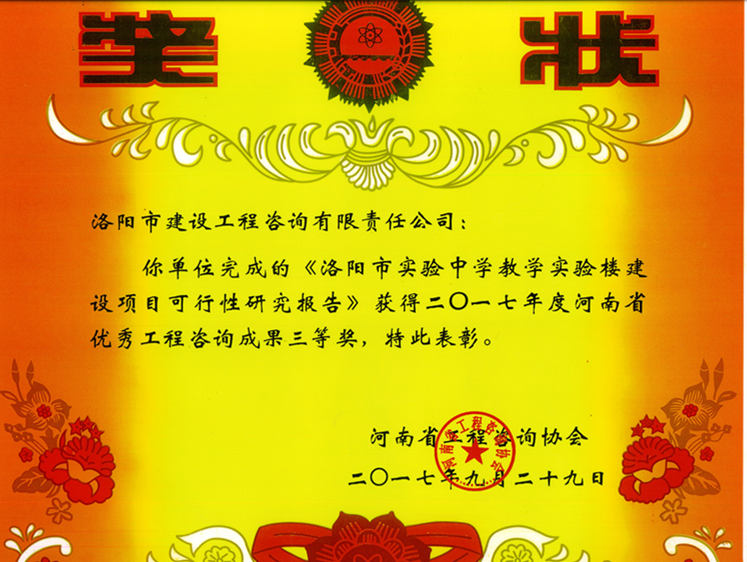 2017年河南省優(yōu)秀工程咨詢成果三等獎(jiǎng)